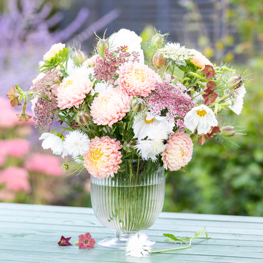 Six easy to grow cutting garden flowers, ranging from white to bronze with apricots and creams.