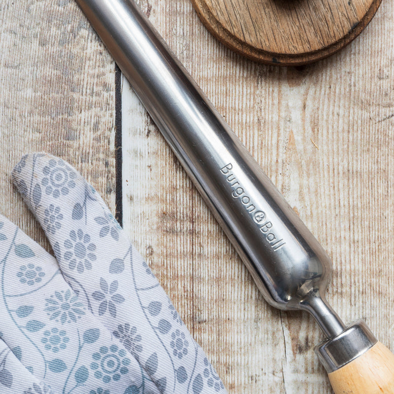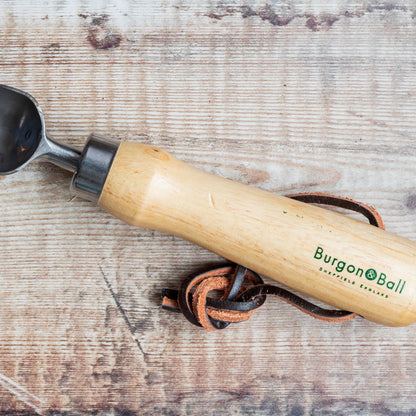 Burgon & Ball Widger in Stainless Steel with FSC certified hardwood Handle. It's 33cm long with a handy leather cord for hanging.