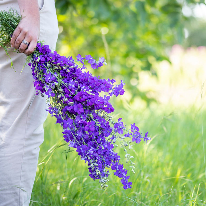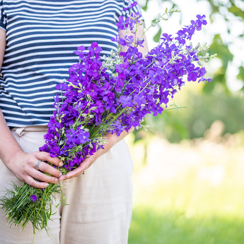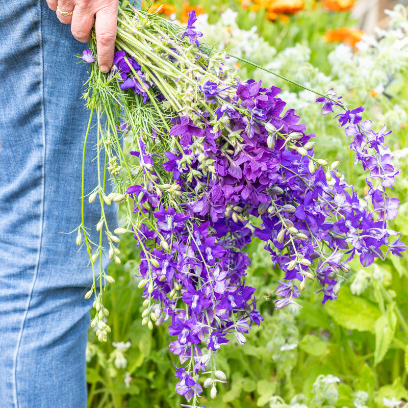 An old-fashioned branching variety, these sturdy plants produce abundant purple flowers from June to September and can keep going to the first hard frost. They make great cottage garden flowers and are good cut flowers with a good vase life. Cut young they should last over a week in fresh water. Caution: All parts of the plant are poisonous if ingested