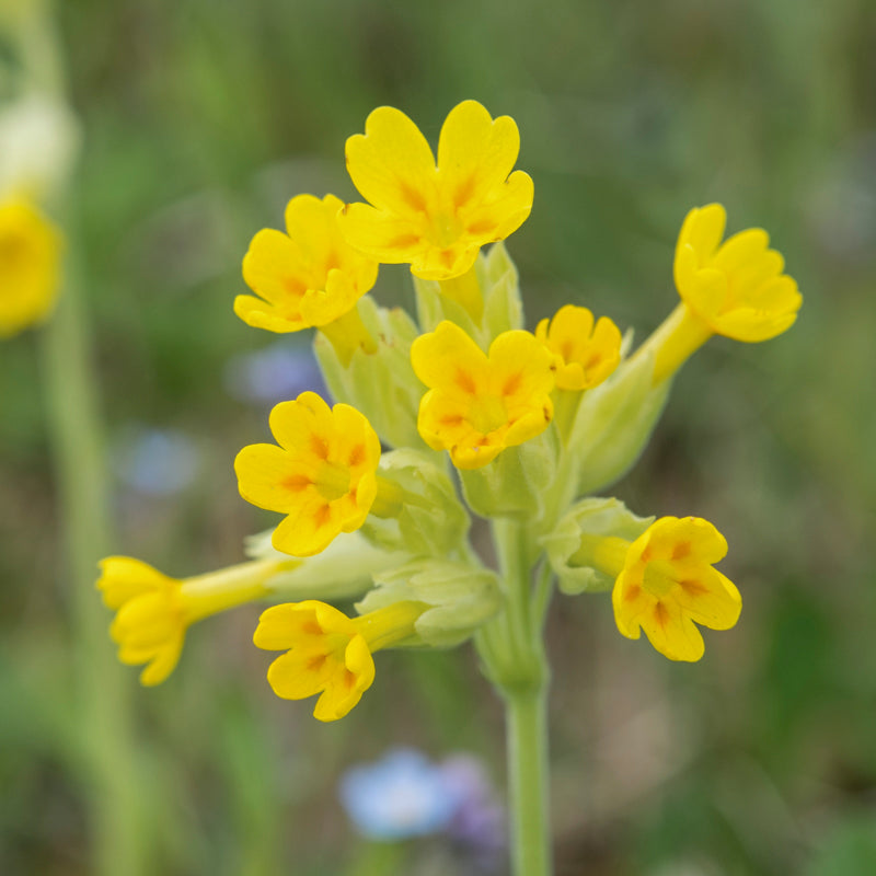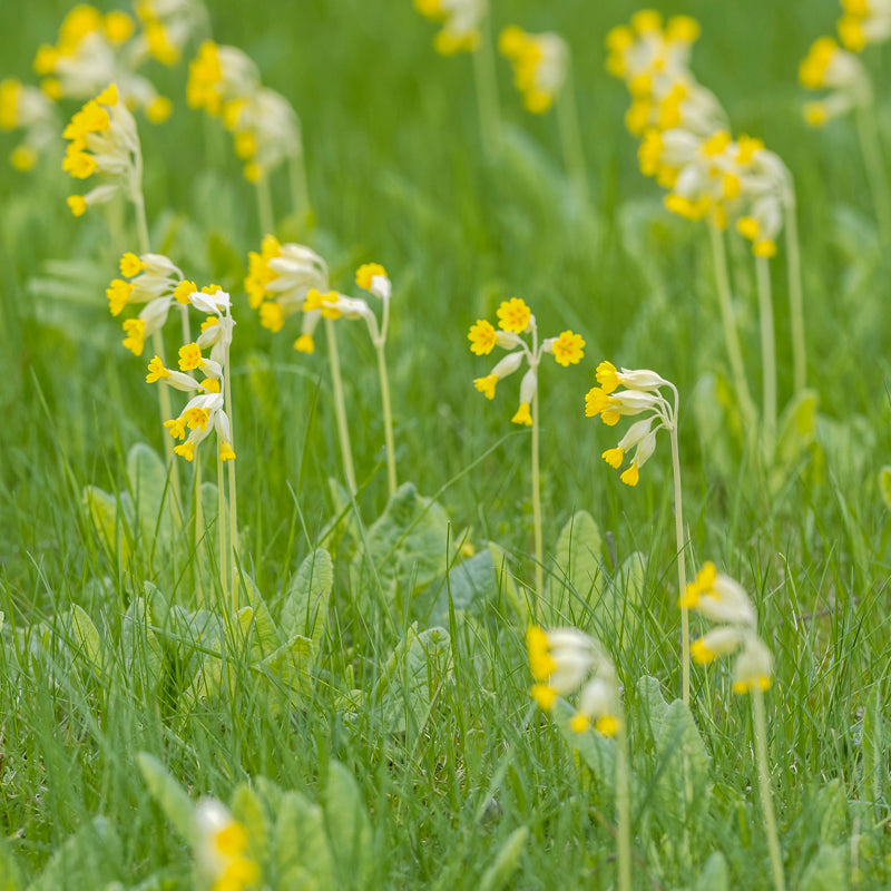 This native perennial was once widespread in moist, grassy meadowlands. Happily self-seeding once established, the scented tubular flowers gently nod on top of short, woolly stems. Produces rosettes of heavily-veined evergreen foliage. Naturalises very well on sunny banks of moisture-retentive soil. Attractive to bees.