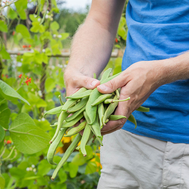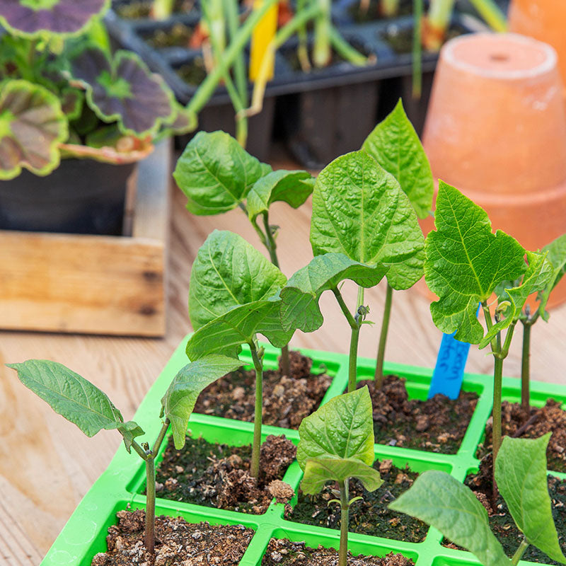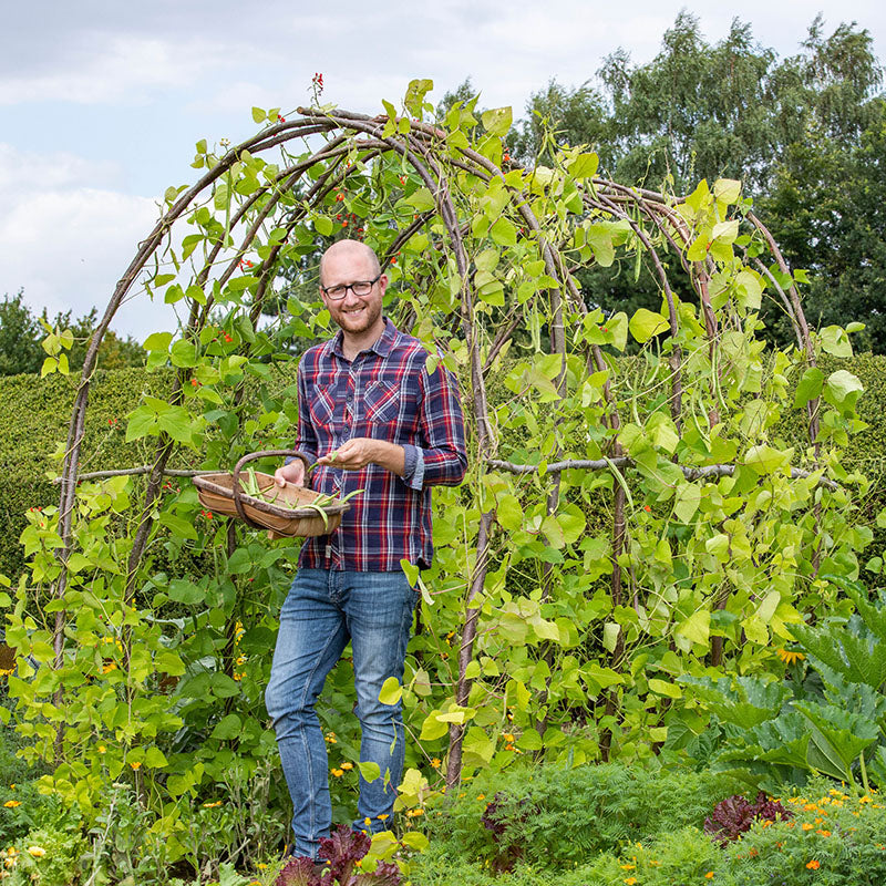 | Aftercare: When runner beans reach the top of the support, pinch out the top. This will encourage side shoots. Pick continuously to prolong cropping. |